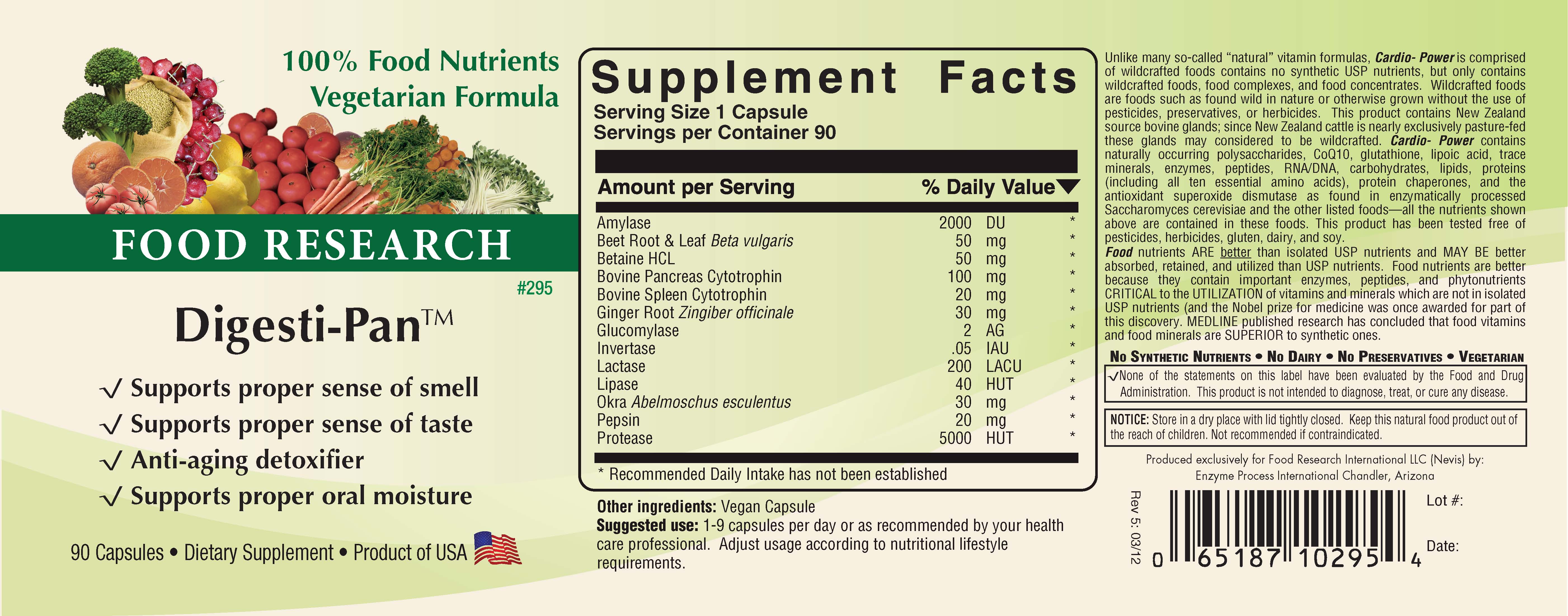 Description: Digesti-Pan from Doctors’ Research is a 100 percent food supplement intended to supply enzymes, glandulars, and herbs needed to maintain optimal and support digestive health. Digesti-Pan contains digestive enzymes, pancreatic tissue, betaine hydrochloride, okra, and other herbs.
