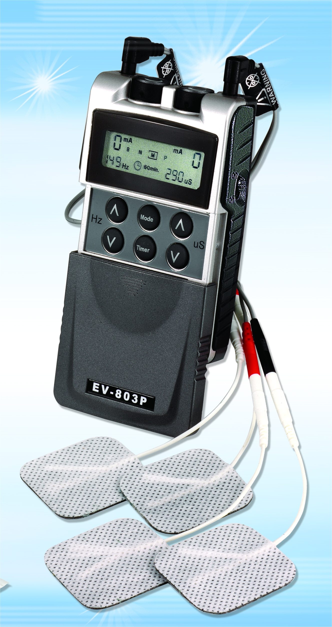 Description: The EV-803P Tens Unit by Medi-Stim Inc. features 9 different preset programs designed to treat various types of pain conditions. The product includes all digital controls, a full LCD display, compliance monitor, and program and intensity lock to prevent accidental changes. The laser also allows treatment with the 3 traditional TENS modes – burst, normal, and modulation.