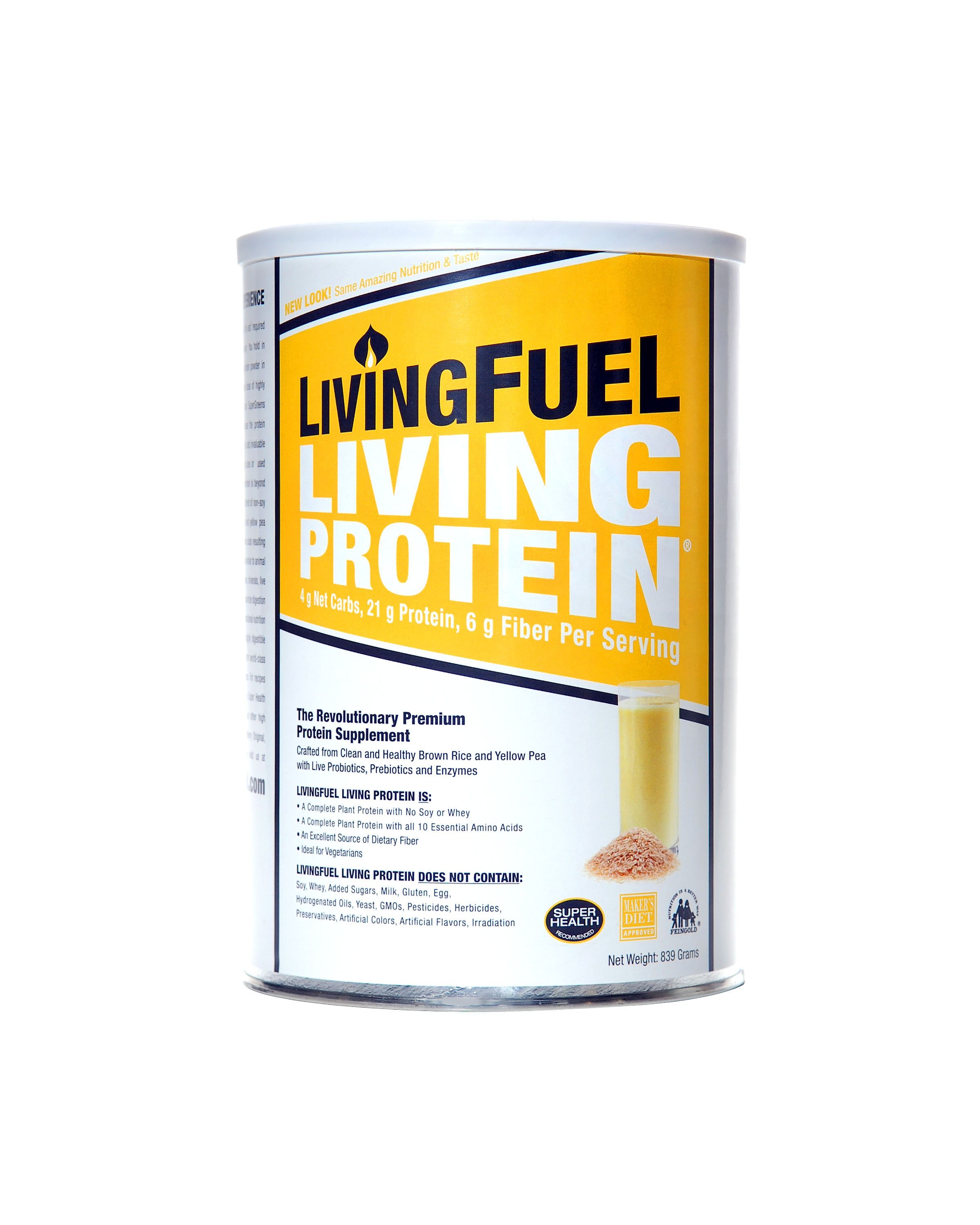 Description: LivingProtein from LivingFuel is a protein and fiber formula derived from healthy plant sources, yet is marketed as yielding “animal strength†protein. It also includes a full complement of nine additional plant-based amino acids and complexes. LivingProtein’s two primary sources include nonGMO brown rice (with more than 75 important nutrients) and yellow pea protein. LivingProtein also contains pre- and probiotics for intestinal health, natural sweeteners that won’t spike blood sugar, and enzymes to help optimize every nutrient. Mix with water for a basic protein smoothie before or after a workout, or anytime you need to refuel. Use it as your main protein source in homemade fruit and yogurt smoothies.