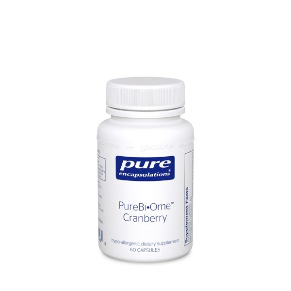 Description: PureBiOme Cranberry from Pure Encapsulations combines a clinically researched multistrain probiotic blend with Lactobacillus gasseri and cranberry extract to support intestinal microflora balance, healthy urinary tract function, and comfort for both women and men. As part of the PureBiOme product line, PureBiOme Cranberry is created utilizing innovative technology that combines probiotics with other active ingredients for the first time without altering the viability of the probiotic organisms. Each strain used in PureBiOme Cranberry was chosen through a unique process designed to identify the most clinically effective probiotic strains.*