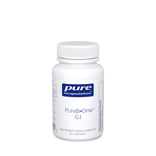 Description: PureBiOme G.I. from Pure Encapsulations combines a clinically researched, multistrain, probiotic blend with l-glutamine to support healthy intestinal microflora blance, G.I. barrier function, G.I. comfort and bowel function.* As part of the PureBiOme product line, PureBiOme G.I. is created utilizing innovative technology that combines probiotics with other active ingredients for the first time without altering the viability of the probiotic organisms. The formula is designed to enhance G.I. integrity and barrier function by supporting the protective mucosal lining with a synergistic combination of probiotic organisms and l-glutamine.* Pure Encapsulations recommends 1-2 capsules daily, in divided doses, with a meal. *These statements have not been evaluated by the Food and Drug Administration. These products are not intended to diagnose, treat, cure, or prevent any disease.