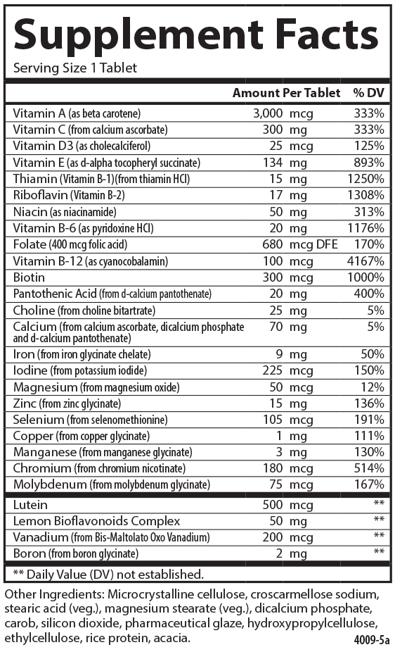 If you’re questioning which vitamin to take every day, Super 1 Daily® will take the confusion out of your decision. Just a single tablet of this extra-strength multivitamin and mineral formula per day provides balanced amounts of important nutrients, plus lutein, which promotes healthy vision. Lutein is a carotenoid found in fruits and vegetables that’s present in high amounts in and around the macula. Studies suggest high levels of lutein in eye tissue are associated with healthy vision.