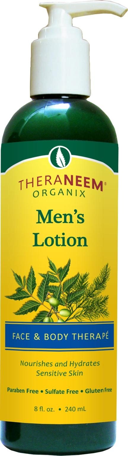 Description: TheraNeem Organix Men’s Lotion: Face & Body Therapé from Organix-South is formulated to nourish and hydrate a man’s sensitive skin. It’s made with certified organic neem, jojoba oil, and aloe vera.