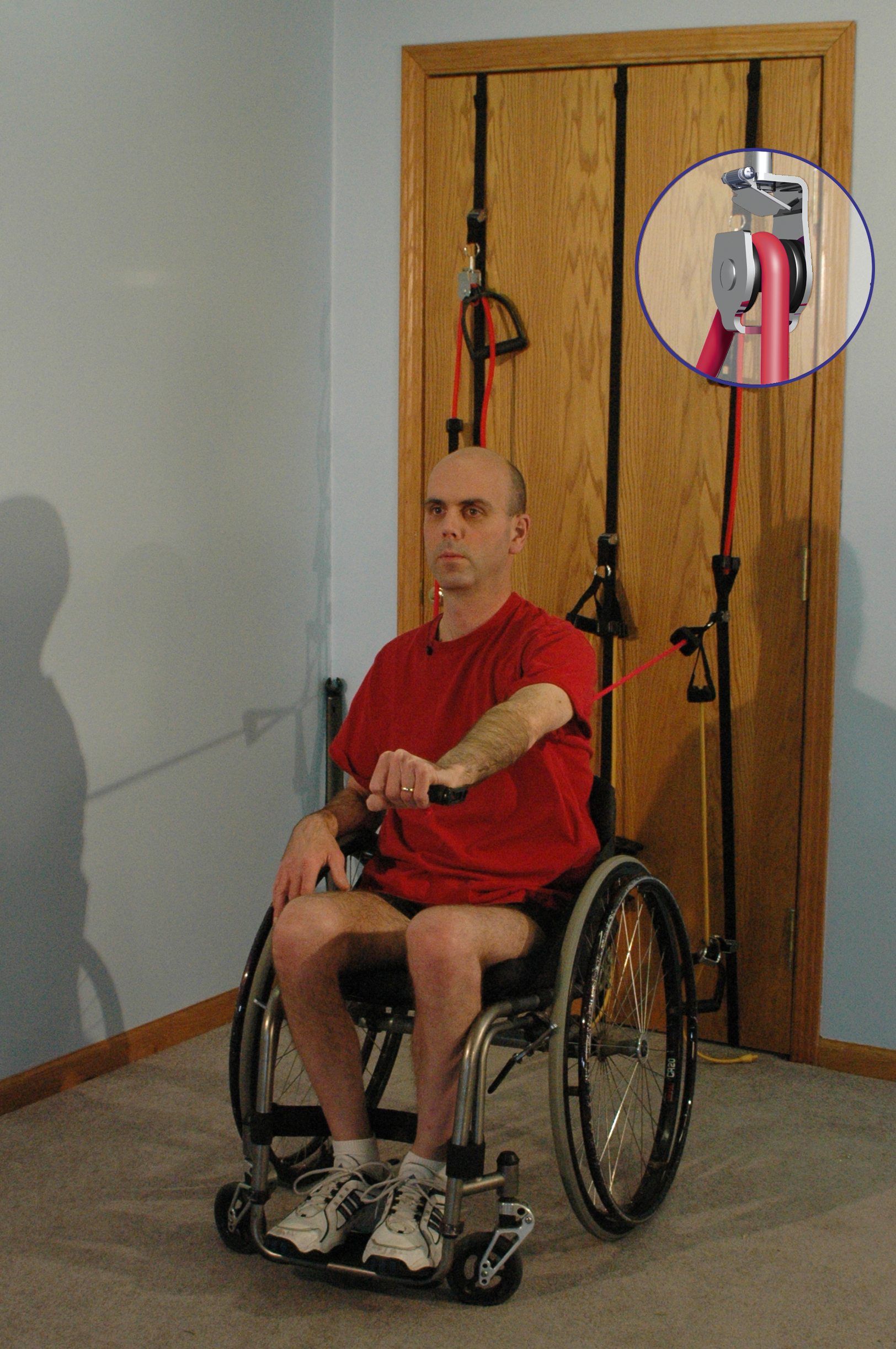 Description: Wheel Gym by Lifeline USA was created to maximize the ability of the wheelchair user to perform a variety of resistance exercises properly, conveniently, and independently. The Wheel Gym is designed to make performing the exercises and adjusting the equipment easy for the wheelchair user. The product includes various resistance bands allowing for adjustability and adaptability.
